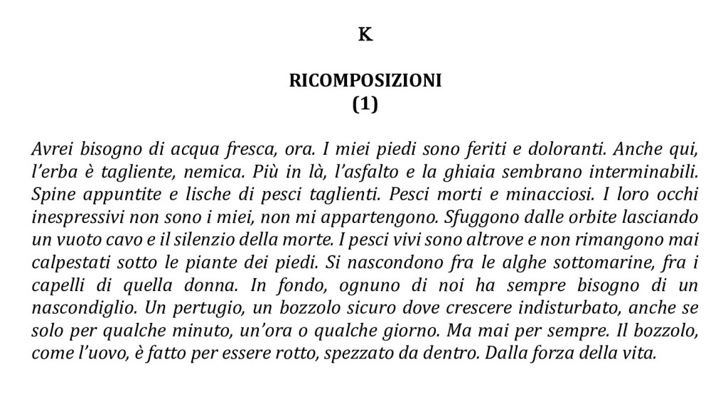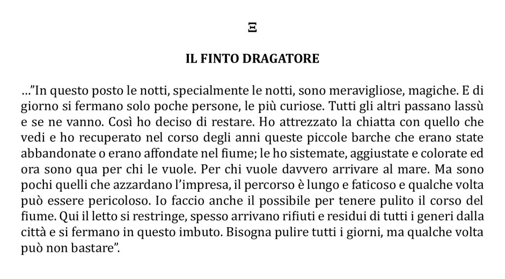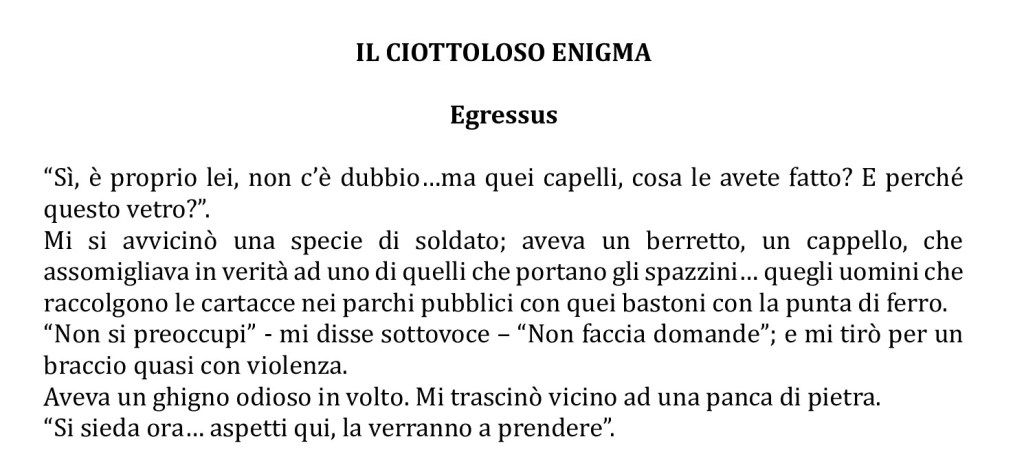 Qui di seguito presento alcune anticipazioni da ognuno dei capitoli del mio nuovo romanzo “Il ciottoloso enigma”, che trovate cliccando nel link in basso, per “ingolosirvi” ad acquistarlo e leggerlo con attenzione. I post sono inseriti in diverse “sezioni” nelle quali è diviso il romanzo, che rappresentano e simboleggiano il viaggio attraverso il greto di un fiume, dalla sorgente alla foce. Si inizia con le sezione “Egressus” e di volta in volta vedrete le altre. Vi consiglio di leggere i vari “post” uno di seguito all’altro, attivando il sottofondo musicale che trovate all’inizio di una nuova sezione (cliccando sulla freccetta nera) ed osservando attentamente la correlazione dei brani con le immagini che li precedono; lasciate finire il brano musicale e rileggete i brani. La pagina verrà di volta in volta aggiornata con nuovi contenuti e nuovi audio (che potete attivare nello stesso modo di volta in volta, quando vedete la barra qui sotto, corrispondente all’inizio di una nuova sezione o di una nuova parte del racconto).